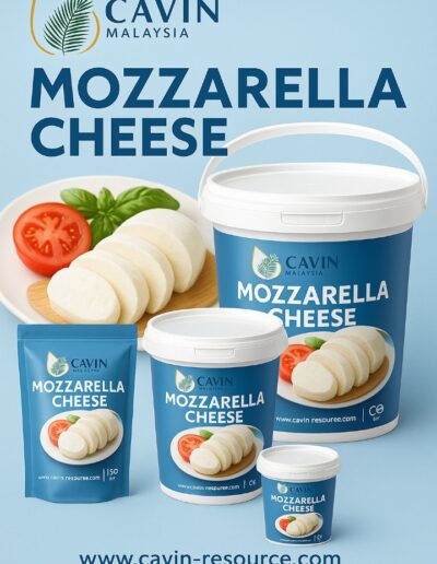 Mozzarella Cheese available in bulk quantities, offering a fresh, creamy texture ideal for pizzas, pastas, and salads. Cavin Resource provides high-quality mozzarella cheese with customizable packaging and global shipping for wholesale buyers.